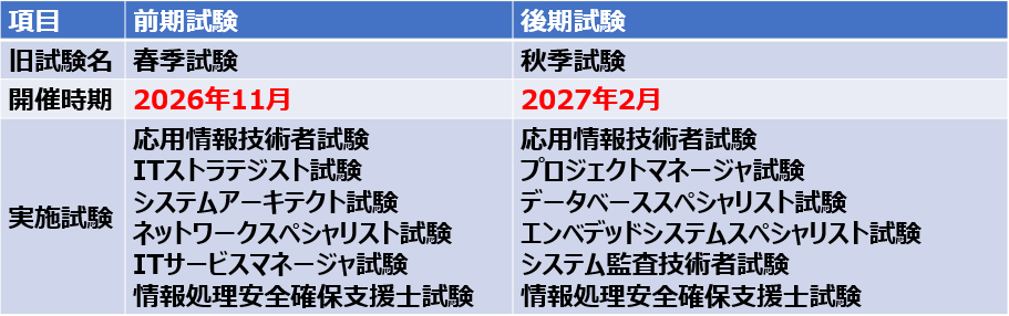 令和8年度後期試験は令和6年度秋季試験~令和8年度前期試験の応用情報技術者試験、高度試験、情報処理安全確保支援士の合格者、令和6年度春季試験~令和7年度秋季試験の午前Ⅰ試験の通過者および令和8年度前期試験の科目A-1通過者が対象となります。