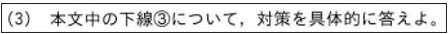 | 設問3 (3) | 二人以上で作業を実施させ、互いに不正しないか監視させ合うこと | 当日担当者を複数名とし、互いに確認しながら作業を実施するように手順を変更する。 | |